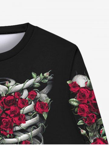 Gothic Skeleton Rose Flower Print Crew Neck Sweatshirt For Men - Black - 4xl