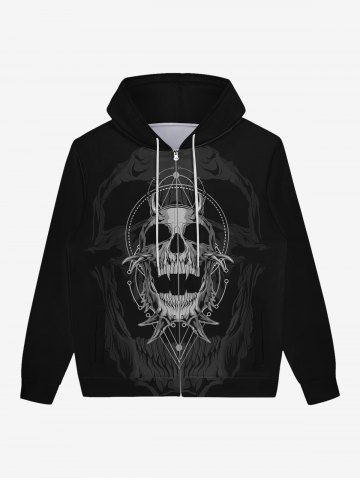 Gothic Skeleton Skull Geometric Graphic Print Zip Up Pockets Hoodie For Men - Black - 2xl