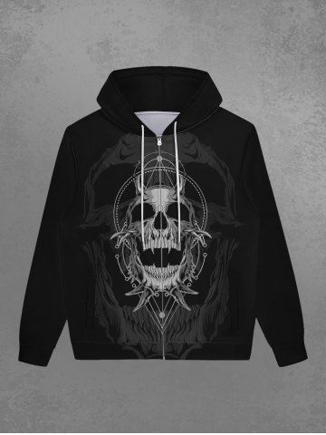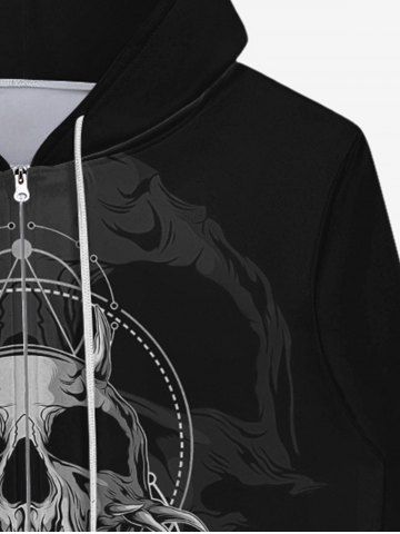 Gothic Skeleton Skull Geometric Graphic Print Zip Up Pockets Hoodie For Men - Black - 3xl