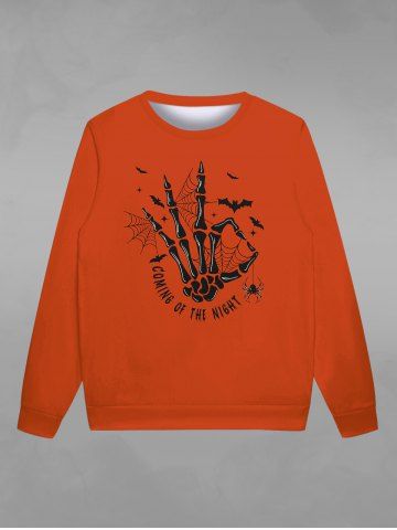 Gothic Skeleton Spider Web Bat Letters Print Halloween Sweatshirt For Men - Red - Xl
