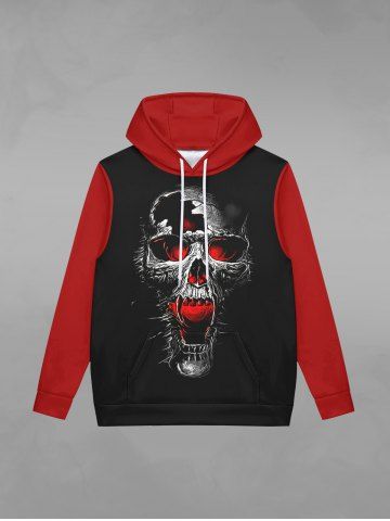 Gothic Skull Flame Print Pockets Fleece Lining Drawstring Hoodie For Men - Black - M
