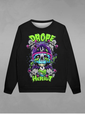 Outerwear > Gothic Skull Letters 3D Print Crew Neck Sweatshirt For Men