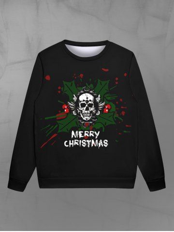 Gothic Skull Letters Painting Splatter Print Christmas Pullover Sweatshirt For Men - Black - 2xl
