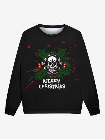 Gothic Skull Letters Painting Splatter Print Christmas Pullover Sweatshirt For Men - Black - 6xl