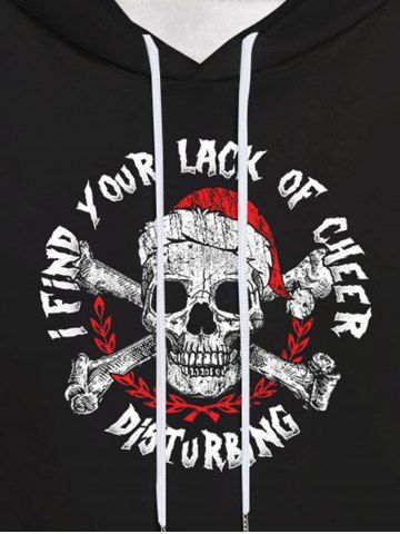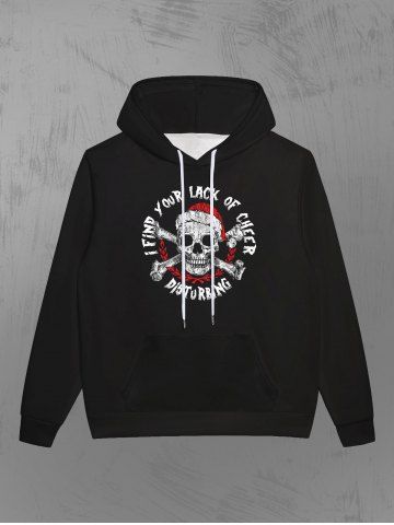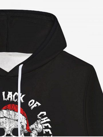Gothic Skull Letters Print Kangaroo Pocket Fleece Lining Drawstring Hoodie For Men - Black - 5xl
