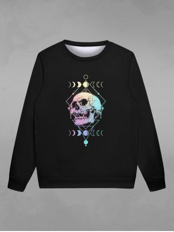 Gothic Skull Moon Print Sweatshirt For Men - Black - 2xl