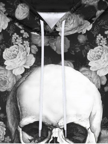Gothic Skull Rose Flower Print Fleece Lining Drawstring Hoodie For Men - Black - 5xl