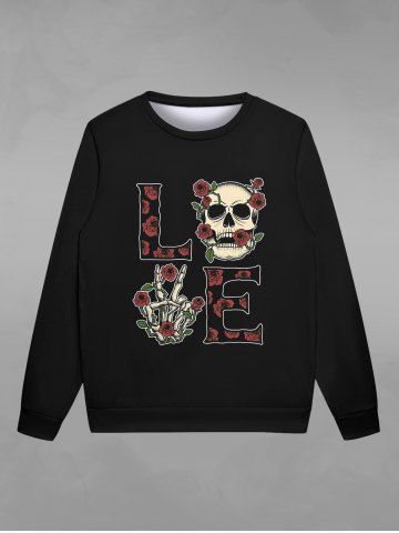 Gothic Skull Skeleton Hand Rose Flower Letters Print Pullover Valentines Sweatshirt For Men - Black - 5xl