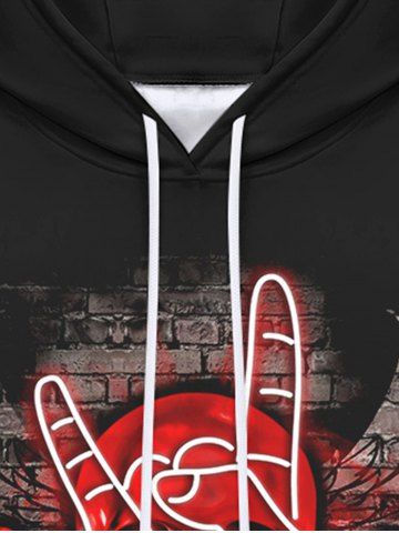 Gothic Skull Skeleton Heart Gesture Wings Print Pockets Drawstring Fleece Lining Hoodie For Men - Black - 3xl