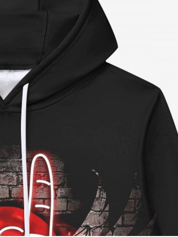 Gothic Skull Skeleton Heart Gesture Wings Print Pockets Drawstring Fleece Lining Hoodie For Men - Black - Xl