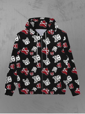 Gothic Skull Skeleton Heart Print Pockets Drawstring Hoodie For Men - Black - Xl