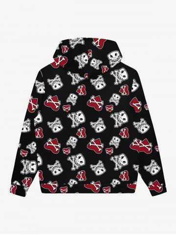 Gothic Skull Skeleton Heart Print Pockets Drawstring Hoodie For Men - Black - 5xl