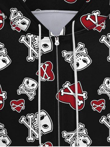 Gothic Skull Skeleton Heart Print Pockets Drawstring Hoodie For Men - Black - 7xl