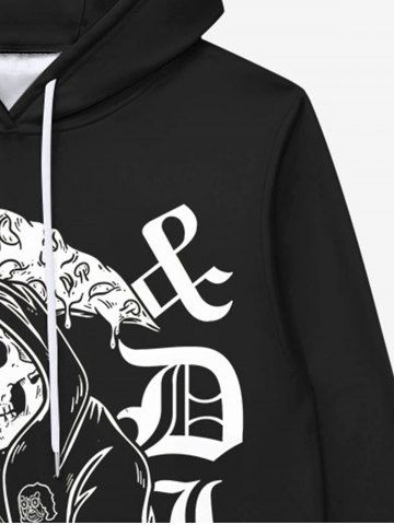 Gothic Skull Wizard Sickle Letters Print Pocket Drawstring Fleece Lining Pullover Hoodie For Men - Black - 2xl