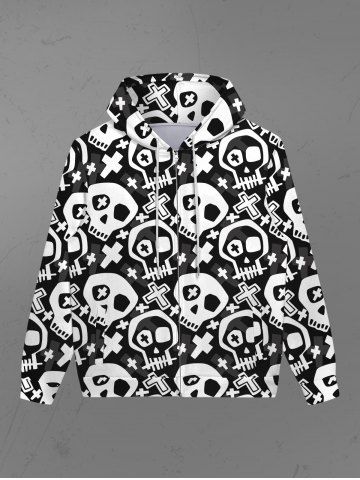 Gothic Skulls Cross Print Two Tone Zip Up Pockets Hoodie For Men - Black - 8xl