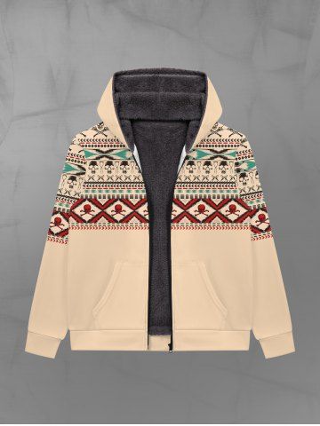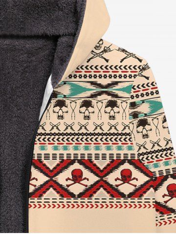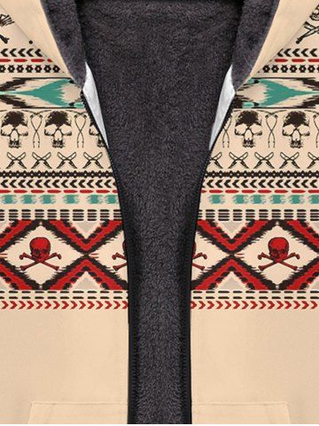 Gothic Skulls Ethnic Graphic Print Full Zipper Pockets Fleece Lining Hoodie For Men - Light Coffee - 6xl