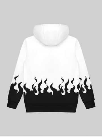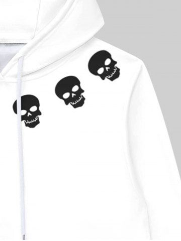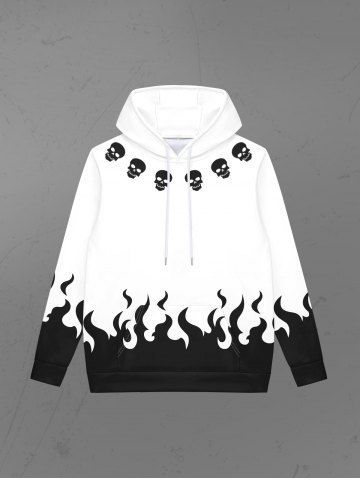 Gothic Skulls Flame Colorblock Print Fleece Linging Drawstring Hoodie For Men - White - Xl