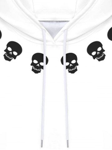 Gothic Skulls Flame Colorblock Print Fleece Linging Drawstring Hoodie For Men - White - 4xl