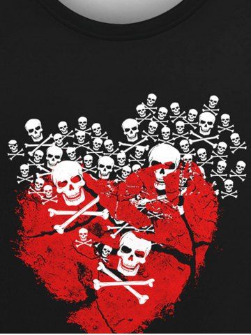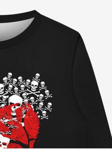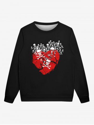 Gothic Skulls Heart Bones Print Crew Neck Pullover Long Sleeves Sweatshirt For Men - Black - 7xl