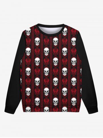 Gothic Skulls Heart Floral Graphic Print Sweatshirt For Men - Black - 3xl