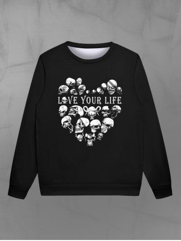 Gothic Skulls Heart Letters Print Sweatshirt For Men - Black - L