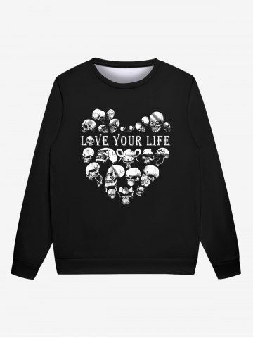 Gothic Skulls Heart Letters Print Sweatshirt For Men - Black - 2xl