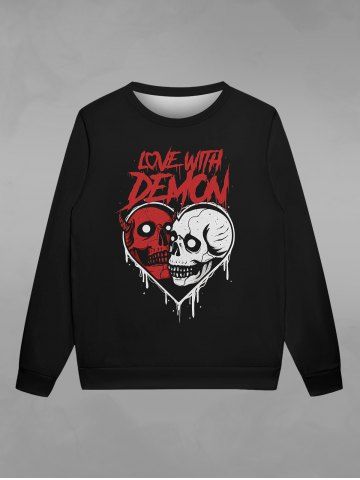 Gothic Skulls Heart Letters Print Valentines Pullover Long Sleeves Sweatshirt For Men - Black - 2xl