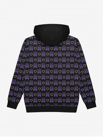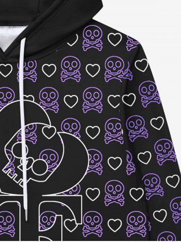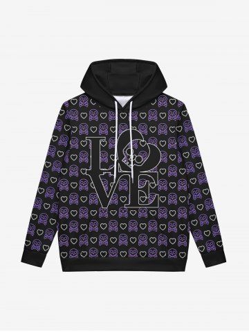 Gothic Skulls Heart LOVE Letter Print Pockets Fleece Lining Drawstring Hoodie For Men - Black - M