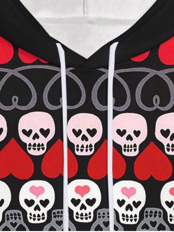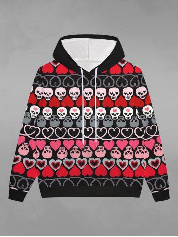 Gothic Skulls Heart Striped Print Valentines Pocket Drawstring Pullover Long Sleeves Hoodie For Men - Light Pink - L