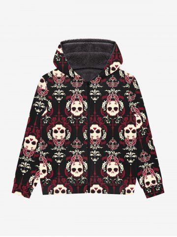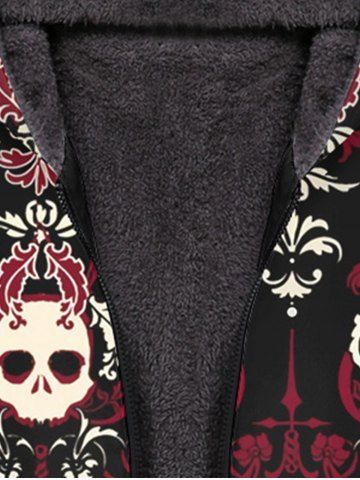 Gothic Skulls Leafs Print Zipper Pocket Fleece Lining Hoodie For Men - Black - 3xl