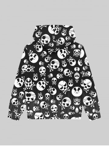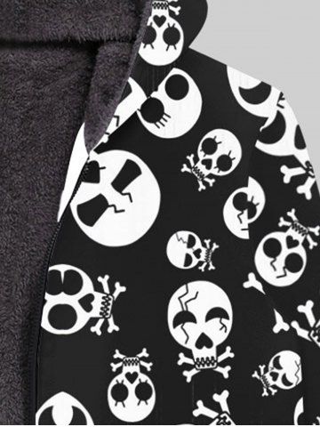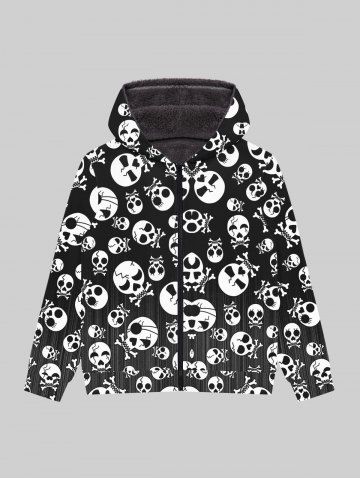 Gothic Skulls Print Halloween Full Zipper Pockets Fleece Lining Hoodie For Men - Black - S