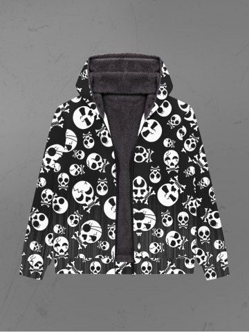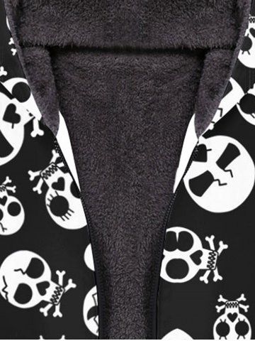 Gothic Skulls Print Halloween Full Zipper Pockets Fleece Lining Hoodie For Men - Black - 6xl