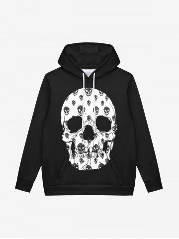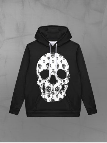 Gothic Skulls Print Pocket Drawstring Fleece Lining Pullover Long Sleeves Hoodie For Men - Black - 2xl