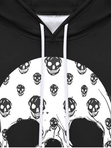 Gothic Skulls Print Pocket Drawstring Fleece Lining Pullover Long Sleeves Hoodie For Men - Black - 5xl
