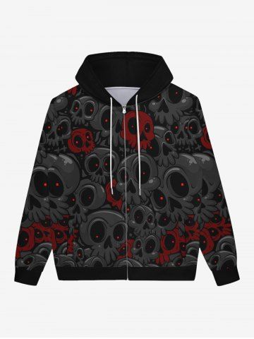 Gothic Skulls Print Zip Up Pockets Hoddie For Men - Black - 4xl