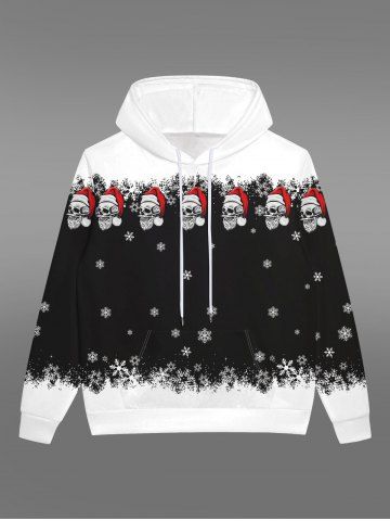 Gothic Skulls Santa Claus Snowflake Print Pocket Fleece Lining Pullover Hoodie For Men - Black - M