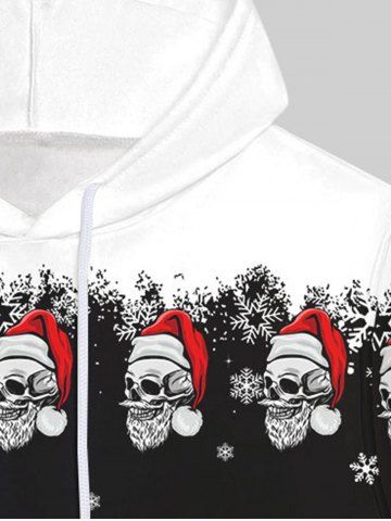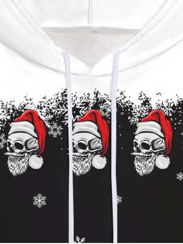 Gothic Skulls Santa Claus Snowflake Print Pocket Fleece Lining Pullover Hoodie For Men - Black - 5xl