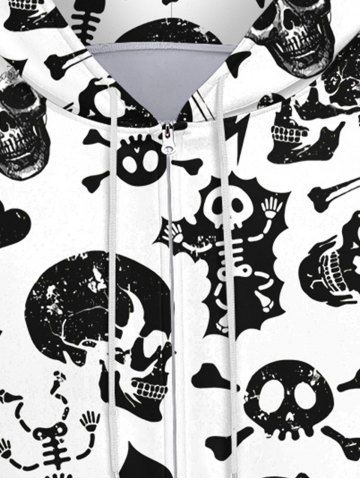 Gothic Skulls Skeleton Fish Bone Heart Print Pockets Zip Up Hoodie For Men - White - 6xl