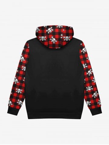Gothic Skulls Skeleton Plaid Checkered Print Pockets Fleece Lining Drawstring Hoodie For Men - Black - 5xl