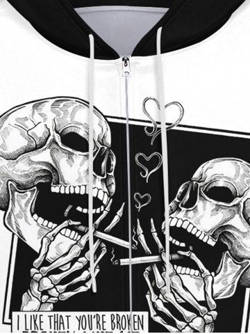 Gothic Skulls Smoking Print Pockets Zip Up Fleece Lining Hoodie For Men - White - 3xl