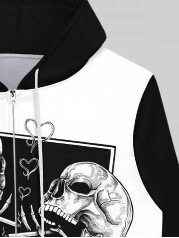 Gothic Skulls Smoking Print Pockets Zip Up Fleece Lining Hoodie For Men - White - 5xl