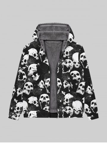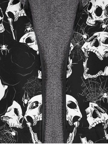 Gothic Skulls Spider Web Rose Flower Print Zip Up Pockets Fleece Lining Hoodie For Men - Black - S