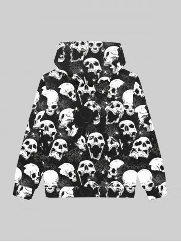 Gothic Skulls Spider Web Rose Flower Print Zip Up Pockets Fleece Lining Hoodie For Men - Black - L