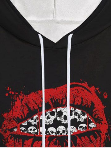 Gothic Skulls Teeth Blood Mouth Print Pockets Drawstring Hoodie For Men - Black - 3xl
