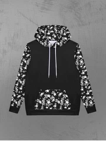 Gothic Stars Print Pockets Pullover Fleece Lining Drawstring Hoodie For Men - Black - M