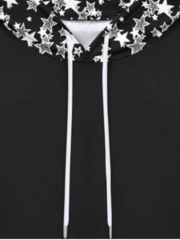 Gothic Stars Print Pockets Pullover Fleece Lining Drawstring Hoodie For Men - Black - L