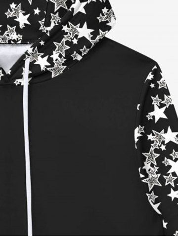 Gothic Stars Print Pockets Pullover Fleece Lining Drawstring Hoodie For Men - Black - 2xl