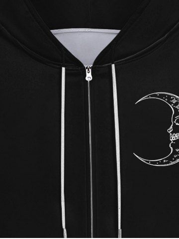 Gothic Sun Moon Print Full Zipper Drawstring Hoodie For Men - Black - Xl