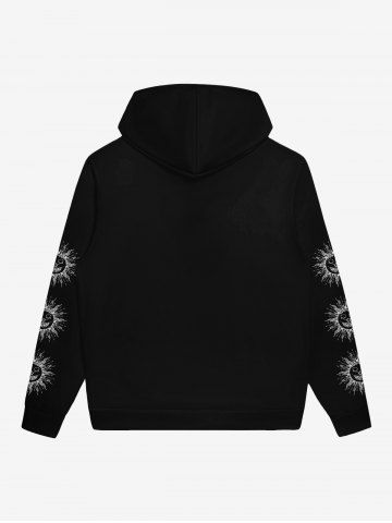 Gothic Sun Moon Print Full Zipper Drawstring Hoodie For Men - Black - 7xl