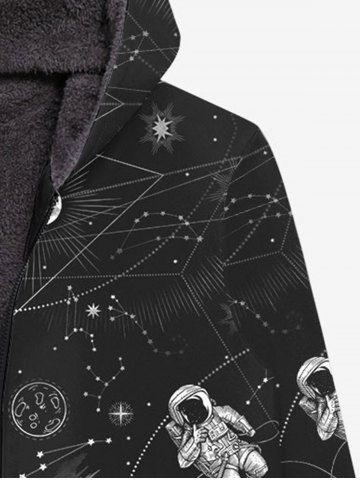 Gothic Sun Moon Star Galaxy Astronaut Planet Print Pocket Zipper Fleece Lining Hoodie For Men - Black - 3xl